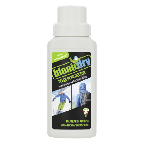 Milieuvriendelijke impregnering op waterbasis. Zonder PFC's, oplosmiddelen en drijfgassen. Geschikt voor kleding én schoenen.